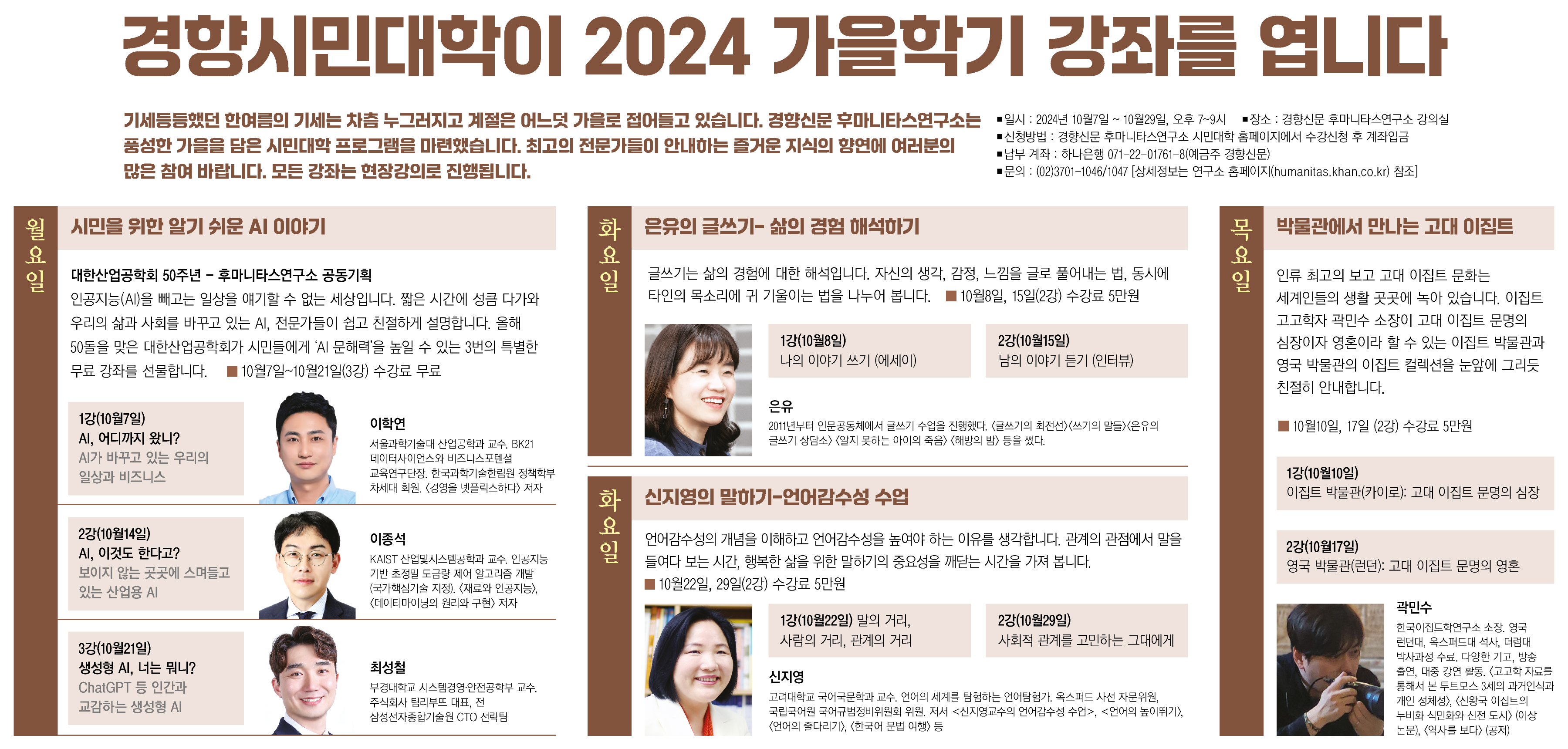 경향시민대학이 2024 가을학기 강좌를 엽니다